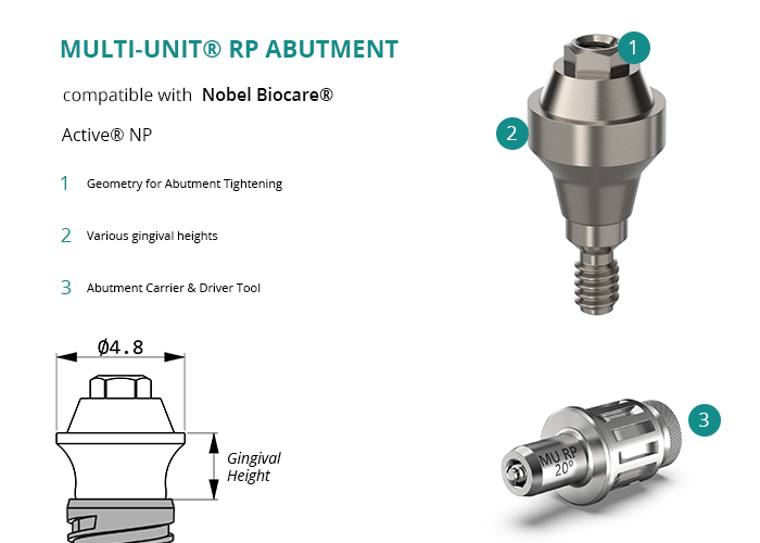 Multi-Unit® RP Abutment compatible with Nobel Biocare® Active® NP