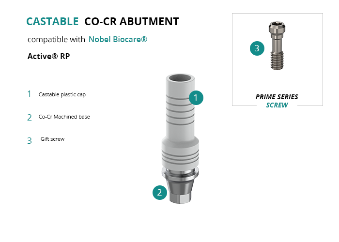 Castable Abutment with Co-Cr Base compatible with Nobel Biocare® Active® RP