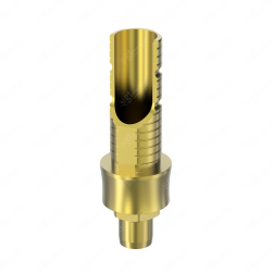GT-Medical's Angled Ti-Base are compatible with Certain® 4.1 implants from Biomet 3i®, ensuring a stable and long-lasting connection between the implant and the prosthesis, while also allowing angulations to be corrected up to 25 degrees. They are made entirely of Titanium Grade 5 with a yellow anodizing for a more aesthetic finish. They have a cementation trunk that can be cut to various heights with an open channel to allow angulation, 3 flat faces to perform the anti-rotating function and a gingival body of various heights, depending on the type of connection.