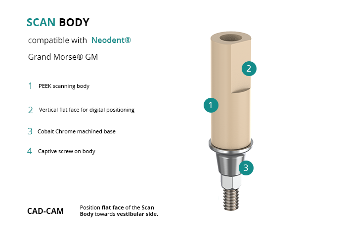 - CAD-CAM: Position flat face of the Scan Body towards vestibular side
