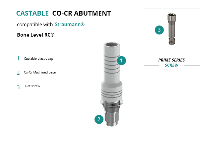Castable Abutment with Co-Cr Base compatible with Straumann® Bone Level RC®