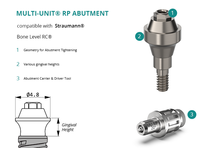 Multi-Unit® RP Abutment compatible with Straumann® Bone Level RC®