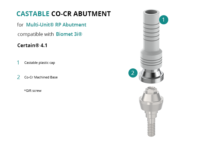 Castable Abutment with Co-Cr Base for Multi-Unit® RP Abutment compatible with Biomet 3i® Certain® 4.1
