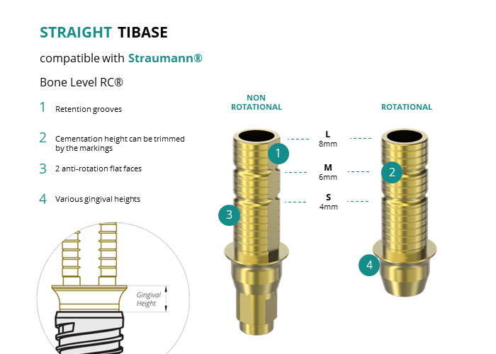 Titanium Straight Base compatible with Straumann® Bone Level RC®