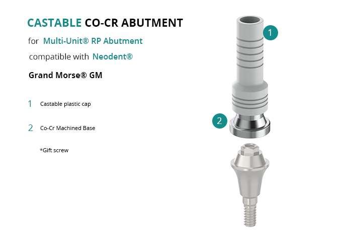 Castable Abutment with Co-Cr Base for Multi-Unit® RP Abutment compatible with Neodent® Grand Morse® GM