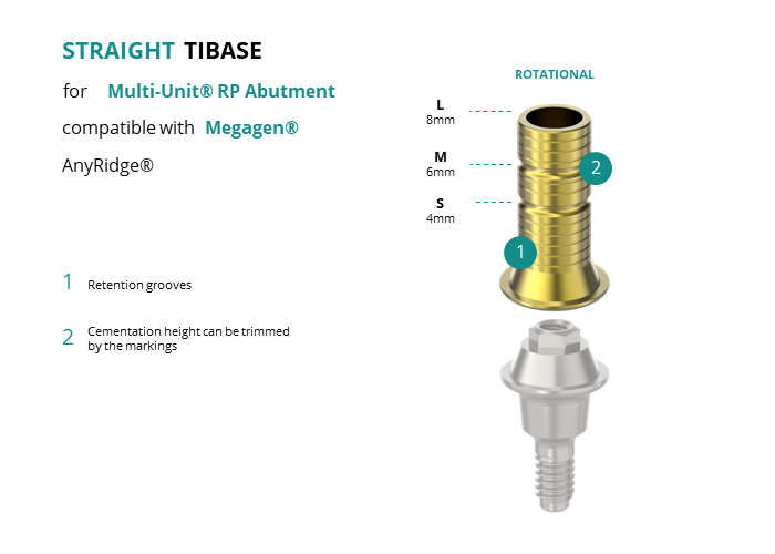 Titanium Straight Base for Multi-Unit® RP Abutment compatible with Megagen® AnyRidge®