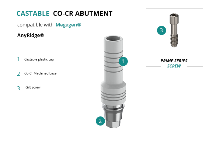 Castable Abutment with Co-Cr Base compatible with Megagen® AnyRidge®