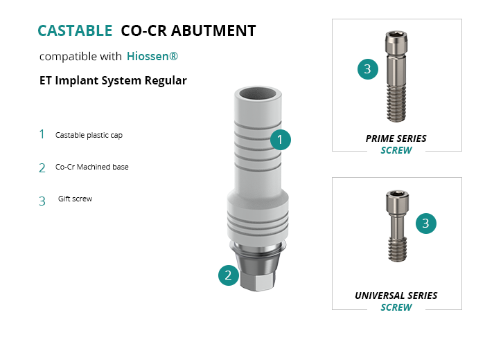 Castable Abutment with Co-Cr Base compatible with Hiossen® ET Implant System Regular
