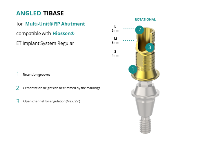 Angled Titanium Base for Multi-Unit® RP Abutment compatible with Hiossen® ET Implant System Regular