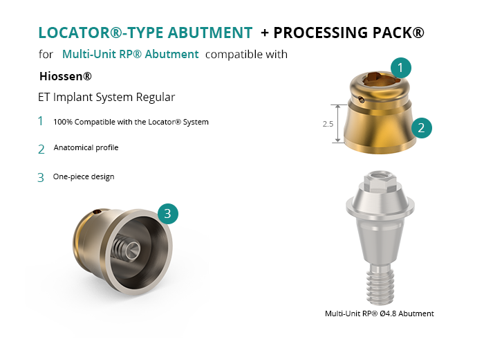 Locator®-Type Abutment for Multi-Unit® RP Compatible with Hiossen® ET Implant System Regular