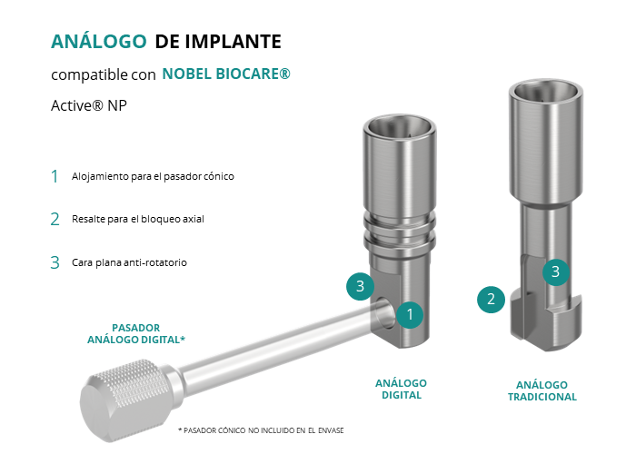 El análogo de GT-Medical compatible con la línea de implantes Active® NP de la marca Nobel Biocare®, está fabricado en Acero Inoxidable, tiene un diámetro de 3.5mm, y replica con exactitud la conexión de este implante de Nobel Biocare®.
