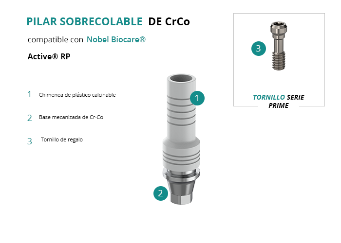 Pilar Sobrecolable de CrCo compatible con Nobel Biocare® Active® RP