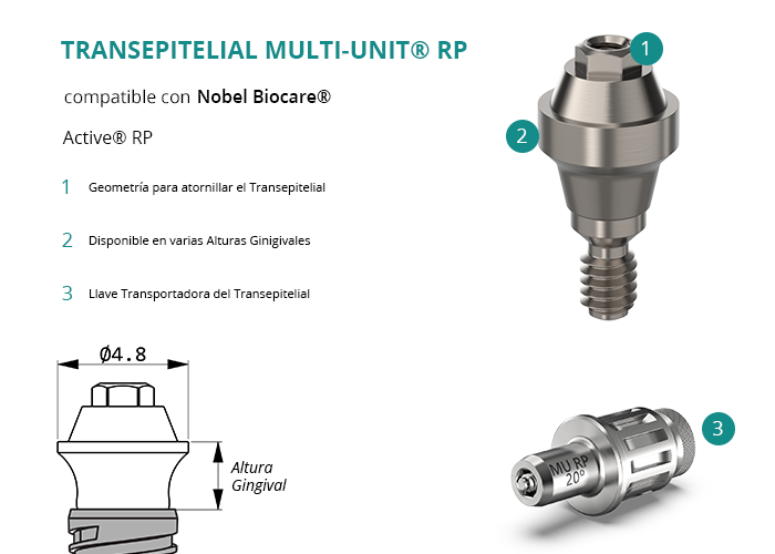 Transepitelial Multi-Unit® RP compatible con Nobel Biocare® Active® RP