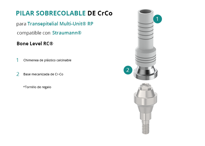 Pilar Sobrecolable de CrCo para Transepitelial Multi-Unit® RP compatible con Straumann® Bone Level RC®