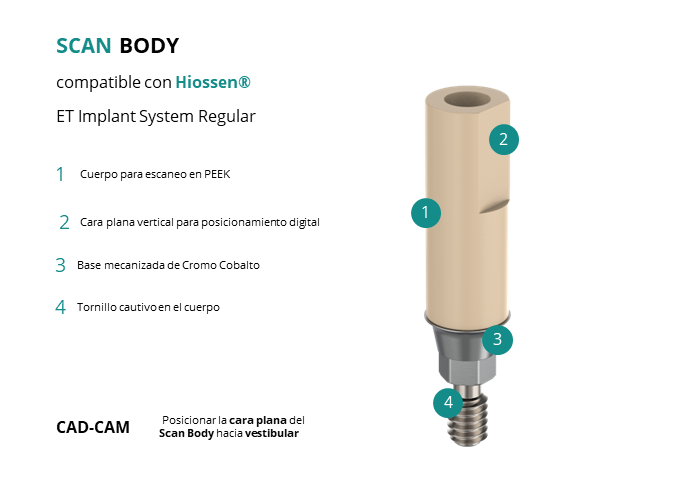 Scan Body compatible con Hiossen® ET Implant System Regular
