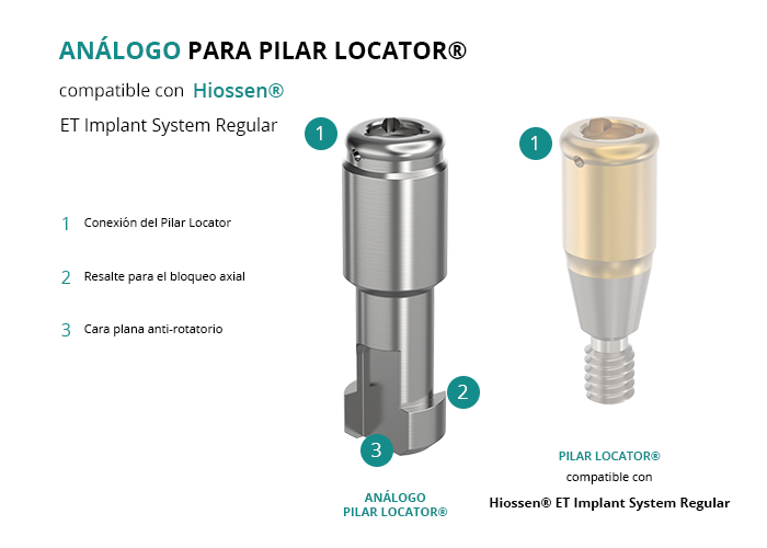 Análogo para Pilar Locator® Compatible con Hiossen® ET Implant System Regular